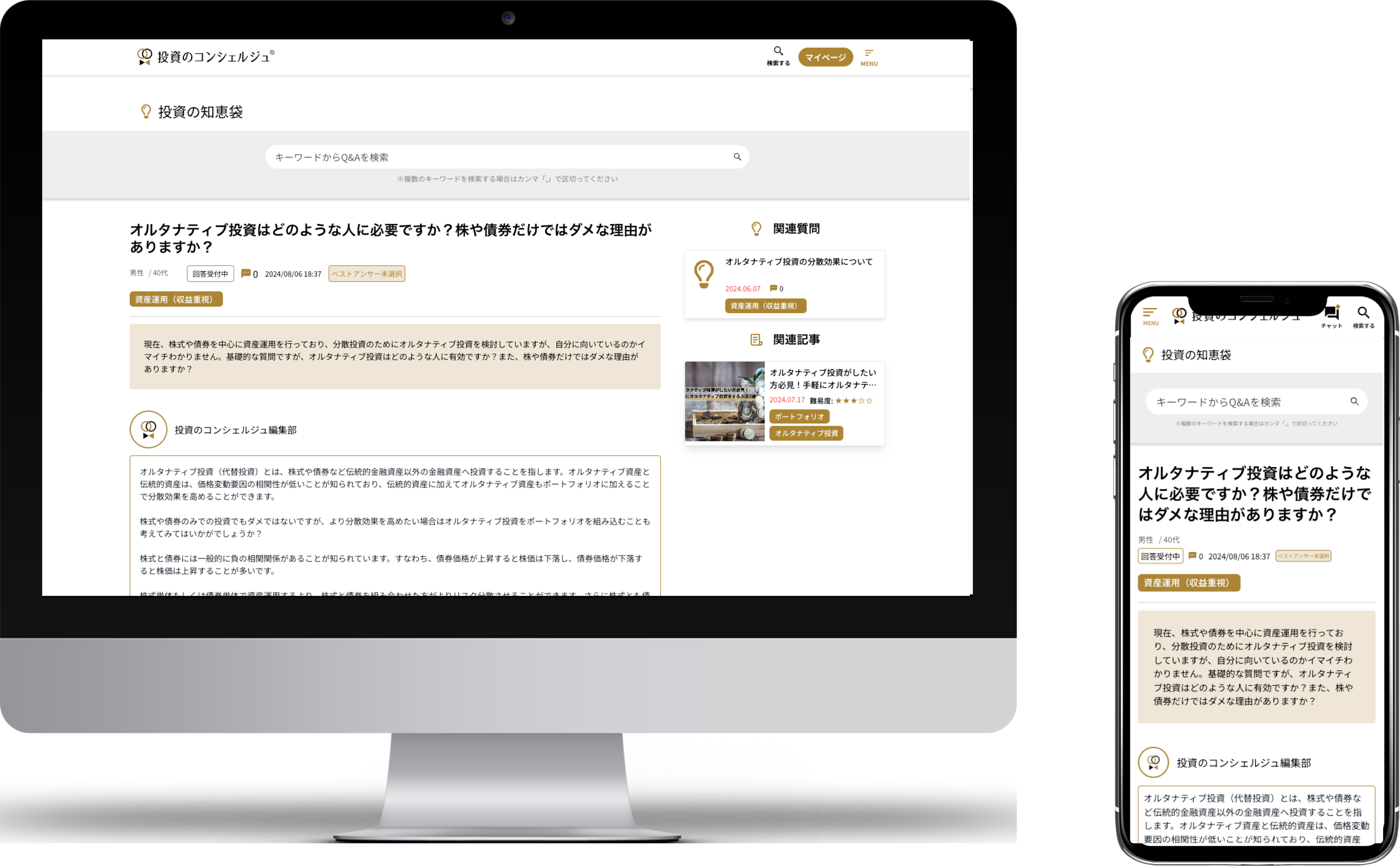 投資のコンシェルジュは資産運用のトータル支援プラットフォームです。